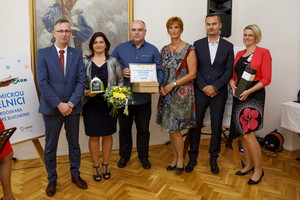 Ocenění Skokan roku získalo pět obcí a měst Moravskoslezského kraje včetně Karviné za výrazné zlepšení odpadového hospodářství. Za naše město se vyhlášení prestižních ocenění zúčastnili a ocenění převzali ředitel Technických služeb Karviná, a.s. Ing. Zbyněk Gajdacz, MPA (třetí zleva) a paní Martina Klusová z Odboru komunálních služeb Magistrátu města Karviné (druhá zleva).