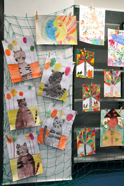 Výtvarná díla vznikala v rámci výuky nebo šlo o speciální projekt? „Vždy v rámci výuky, ale ta u nás nebývá tradiční. Někdy ani nedokážu přesně říct, jaký předmět zrovna máme. Celý den se přirozeně věnujeme jednomu tématu a zpracováváme ho různými způsoby. Na vystavených obrázcích děti pracovaly dvě až tři hodiny.“