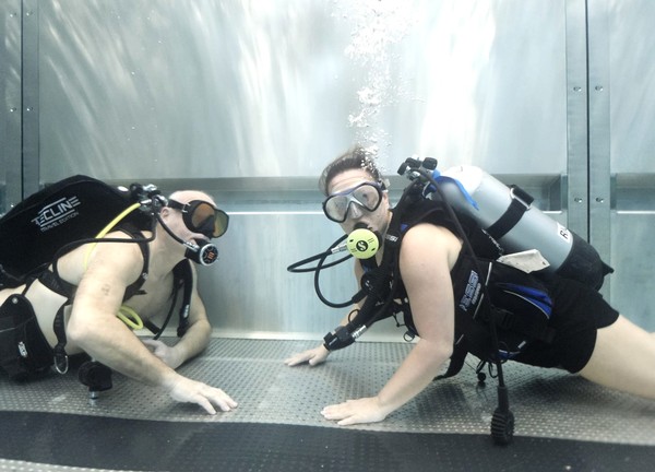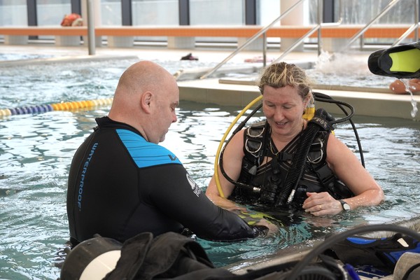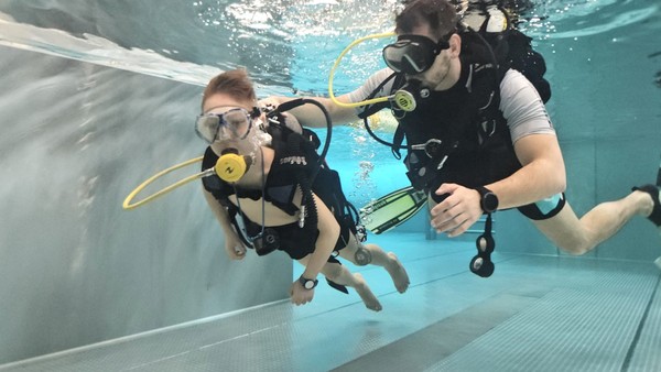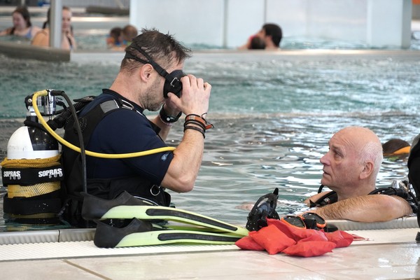 „V této fázi jde hlavně o to vyzkoušet si samotný pocit pod vodou a dýchání s přístrojem. Nezatěžujeme účastníky složitými cvičeními, důležité je, aby se sžili s prostředím a zjistili, jestli jsou schopni se pod vodou uvolnit a fungovat. Pokud to zvládají, ukážeme jim základní věci, jako práci s maskou nebo výstrojí,“ vysvětlil instruktor potápění Petr Hořák. První okamžiky pod vodou často doprovází nejistota nebo obavy, ty ale podle něj rychle mizí. „Na začátku může být trošku stres a adrenalin, ale jakmile se lidé uklidní a začnou vnímat dýchání, všechno se změní. Na konci ponoru už se pohybují samostatně a zvládají základní orientaci,“ doplnil kolega instruktor Tomáš Zwettler.