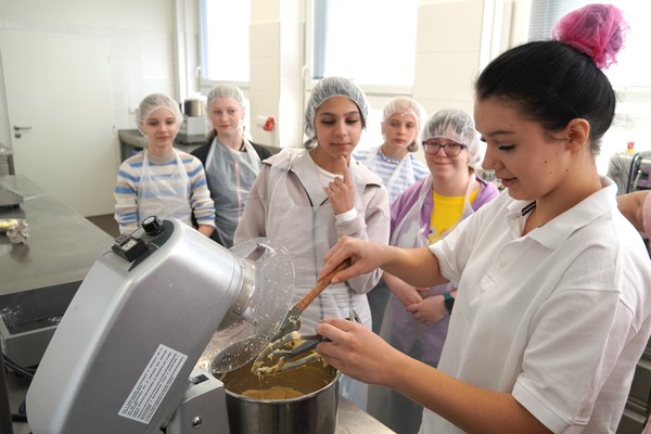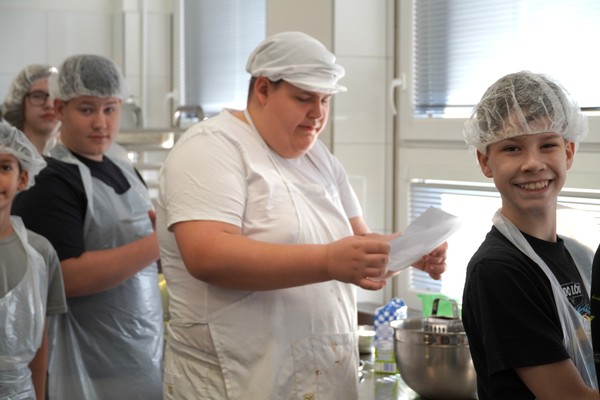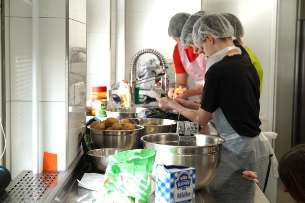 Při jedné z návštěv si žáci sedmé třídy vyzkoušeli tři různá pracoviště. V kuchyni připravovali bramboráky, v cukrářské dílně vyráběli věnečky a v truhlárně si zhotovili dřevěné vařečky. Po celou dobu jim byli k dispozici pedagogové i žáci střední školy, kteří jim pomáhali a předávali své zkušenosti z oboru.